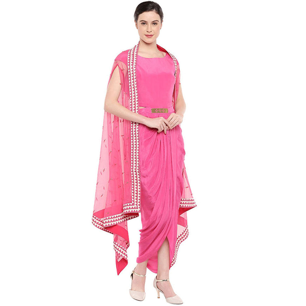 Description : Soup by Sougat Paul Coral Drape Dress with Cape