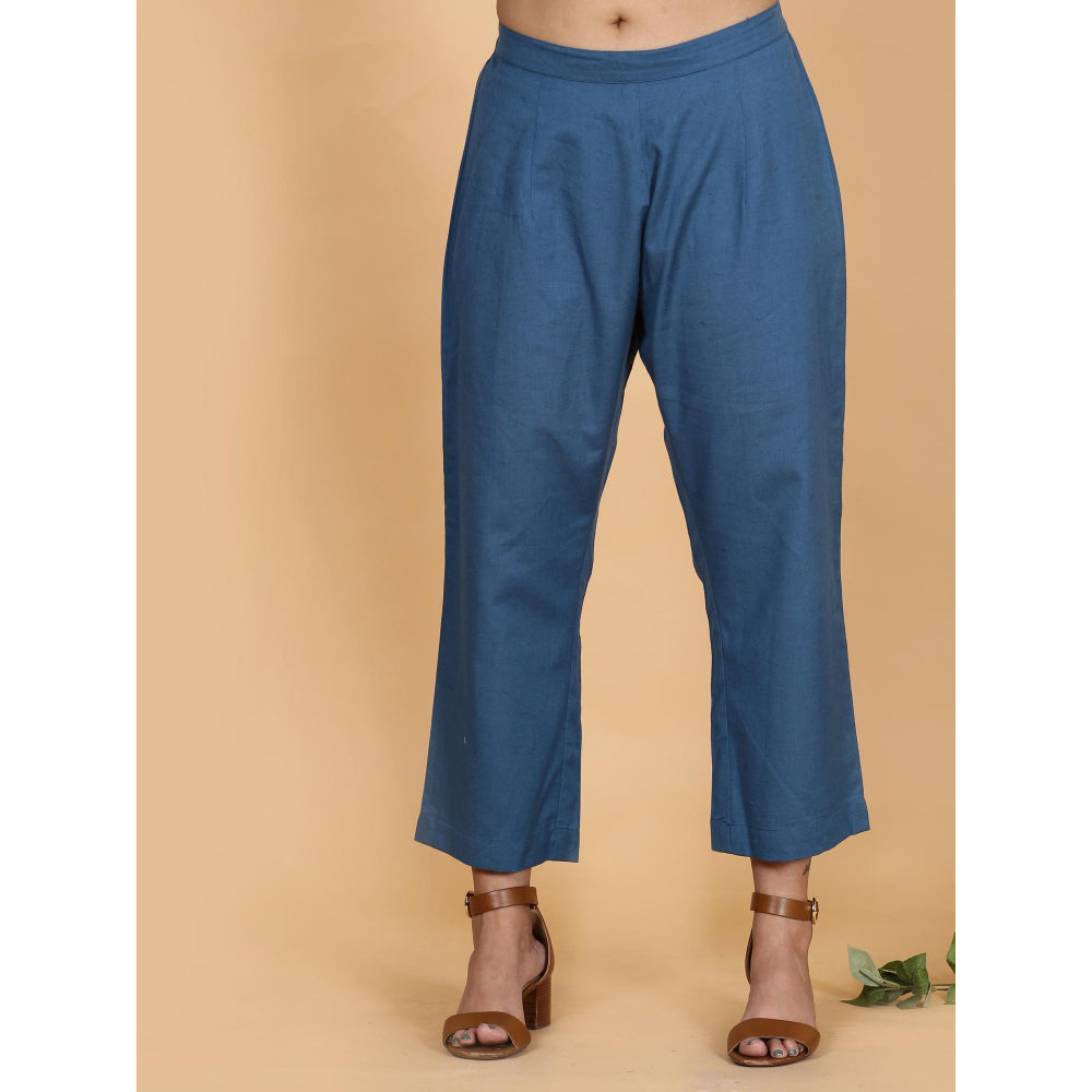 Blue Coloured Cotton Flax Kurta with Pant (Set of 2)