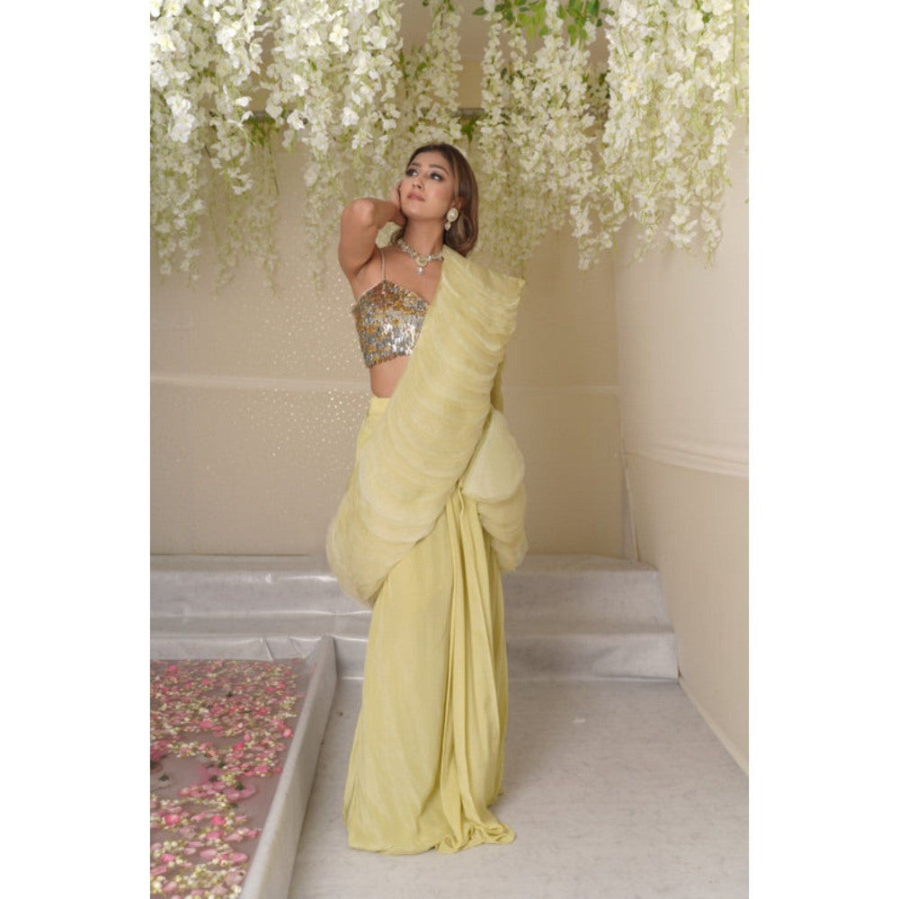 SUBTLE Aurora Solid Drape Saree with Stitched Blouse and Pallu