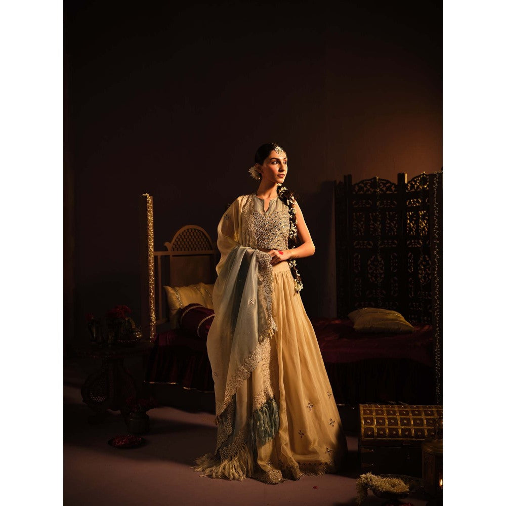 Powder Blue Lehenga with Blouse and Dupatta (Set of 3)