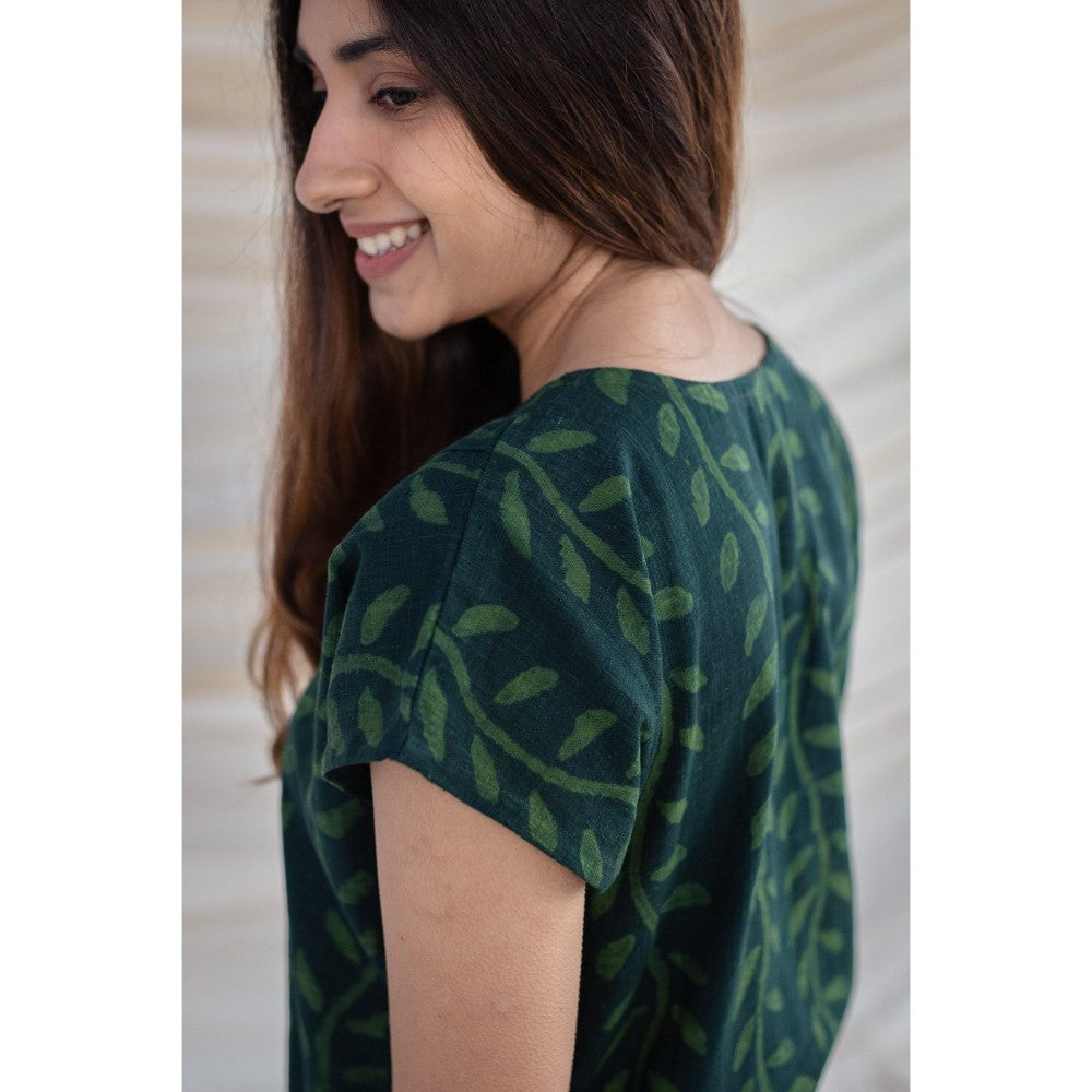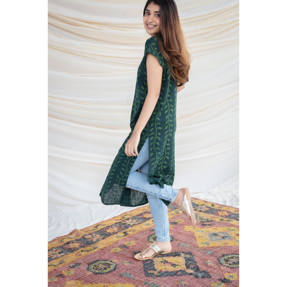 The Indian Ethnic Co. Green Slub Cotton Kurta