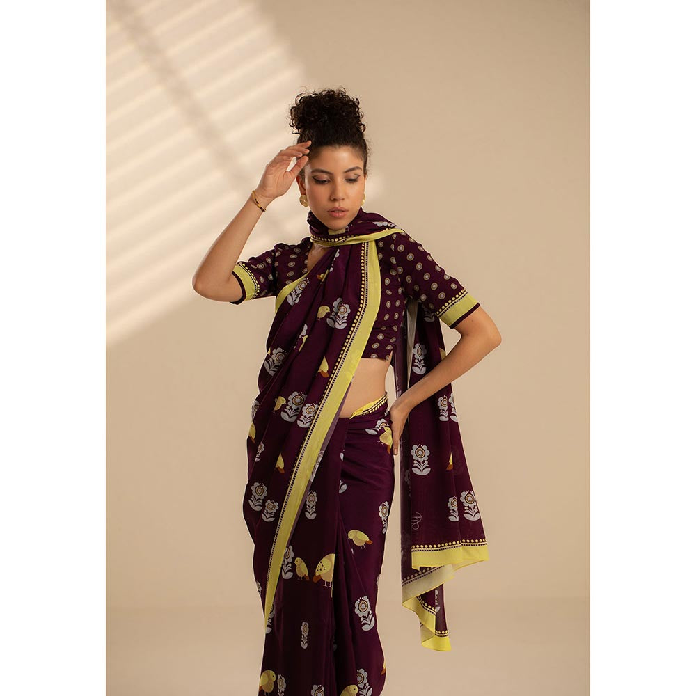 Thee Modern Roots Fluttering Beauty Printed Crepe Saree with Unstitched Blouse