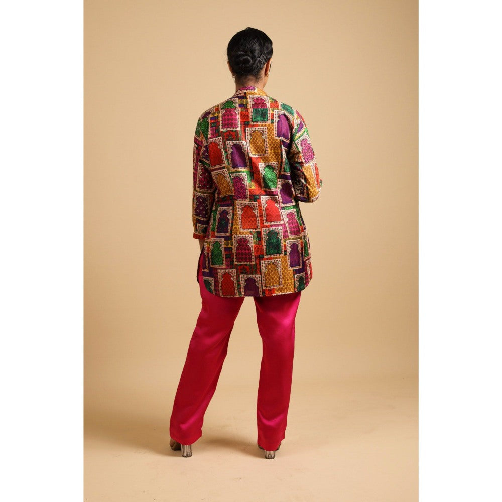 Description : Hand-Embroidered Coord Set With Matching Hot Pink Pants This Coord Set Features A Beautifully Embroidered Top That Combines Style And Comfort, Making It Perfect For Various Occasions. The Matching Pink Pants Are Tailored For A Flattering Fit, Seamlessly Complementing The Embroidered Top For A Cohesive Look. Crafted From Soft, Breathable Materials, This Outfit Ensures All-Day Comfort While Maintaining A Polished Appearance. Adorned With Vibrant Hand-Stitched Designs, The Set Adds A Personal And Artistic Touch, Elevating Your Fashion Game Effortlessly. Garment Has An Ease Of 2 Inches Compared To Standard Size Chart Measurements Features A Generous Margin Of 2-3 Inches For Future Adjustments. Model Size: Height Is 5 3 And Is Wearing Size Material: Pure Silk, Viscose, Santoni. Of Components: 2Delivery Time: 15-20 Business Days From Date Of Purchase Care: Dry Clean Only