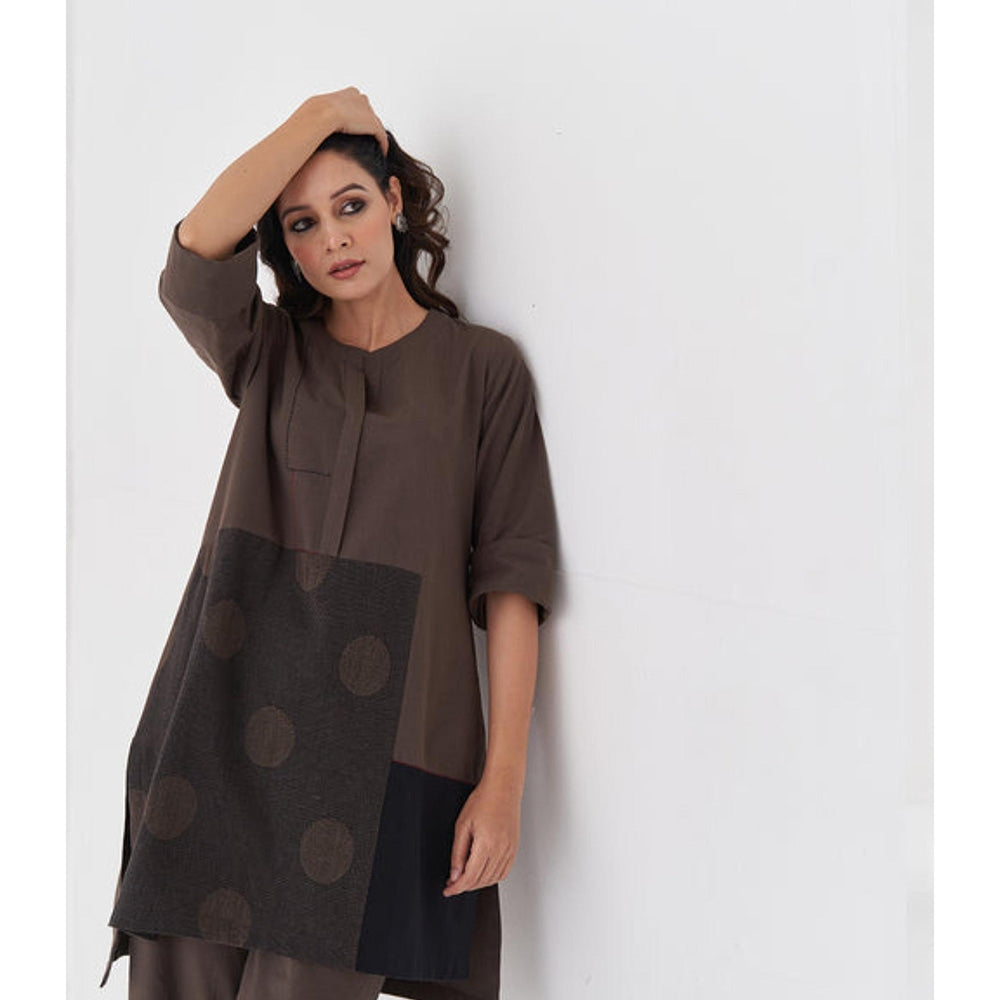 Ash Brown and Black Polka Handwoven Cotton Co-Ord Set