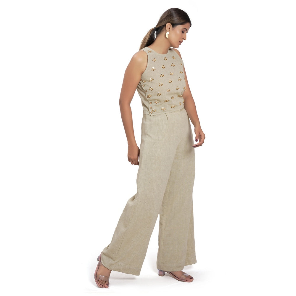 Description : Featuring Sustainable Beige Handloom Cotton Top Embellished with Hand Crafted Sea Shell and Wooden Beads.