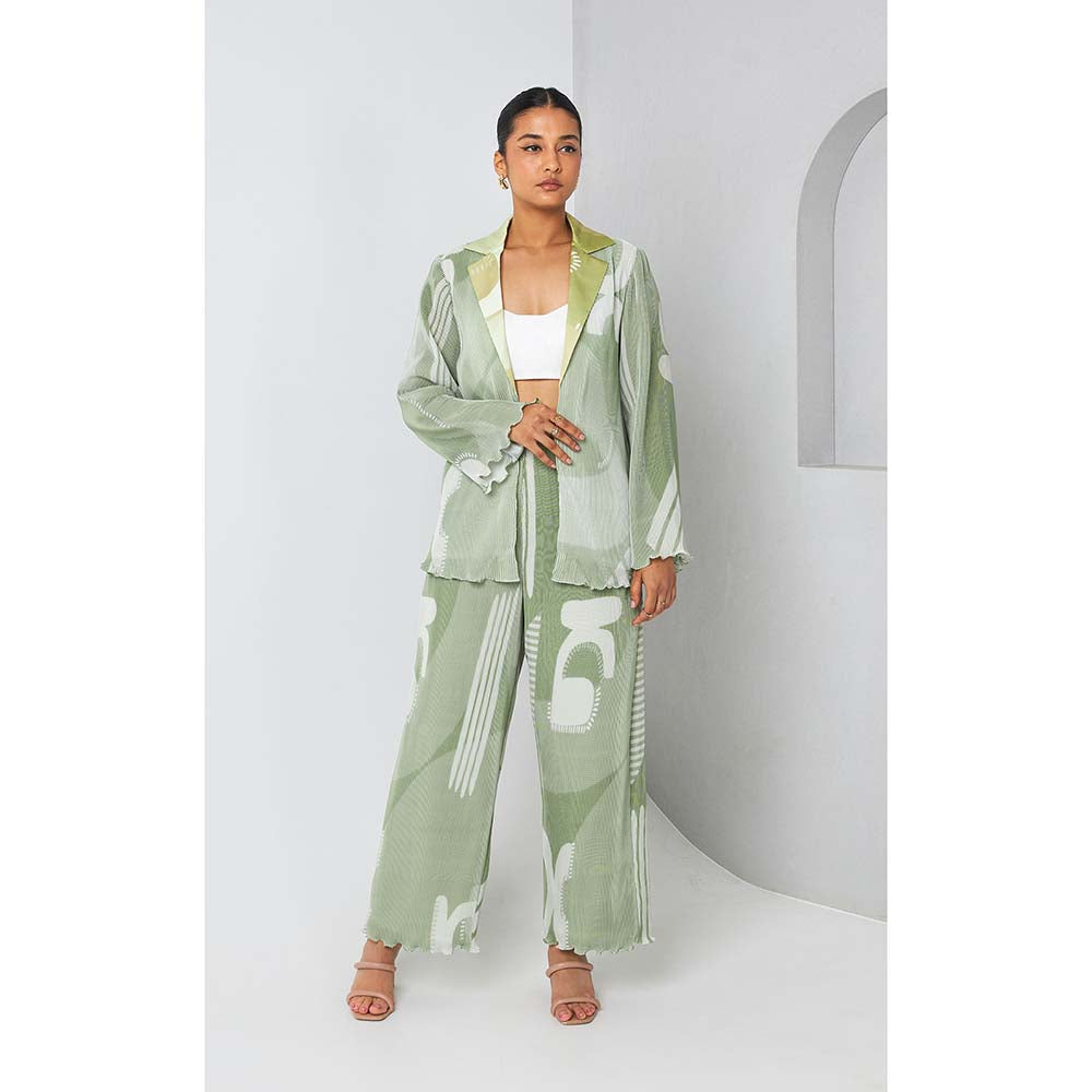 Green Printed Jacket with Bustier and Pant (Set of 3)