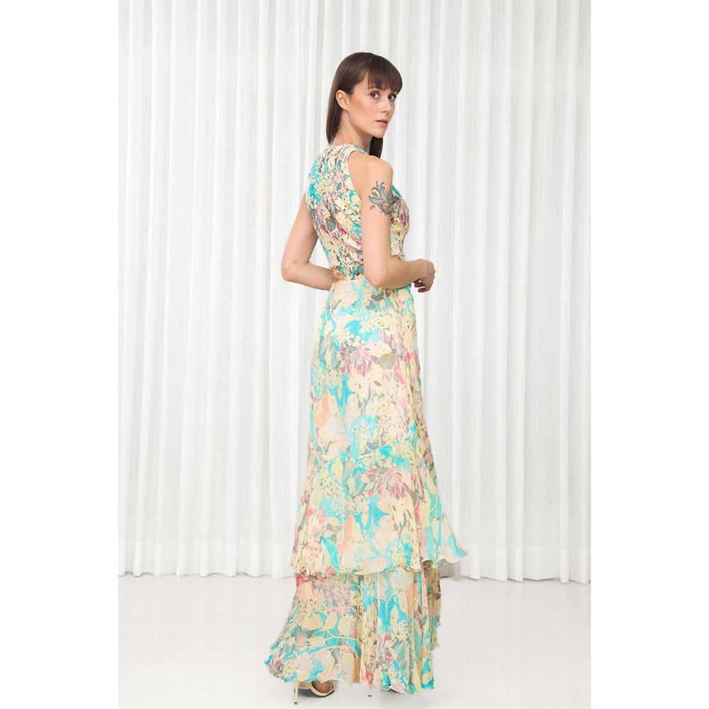 MANDIRA WIRK Tube Rose Printed High Low Dress with Belt