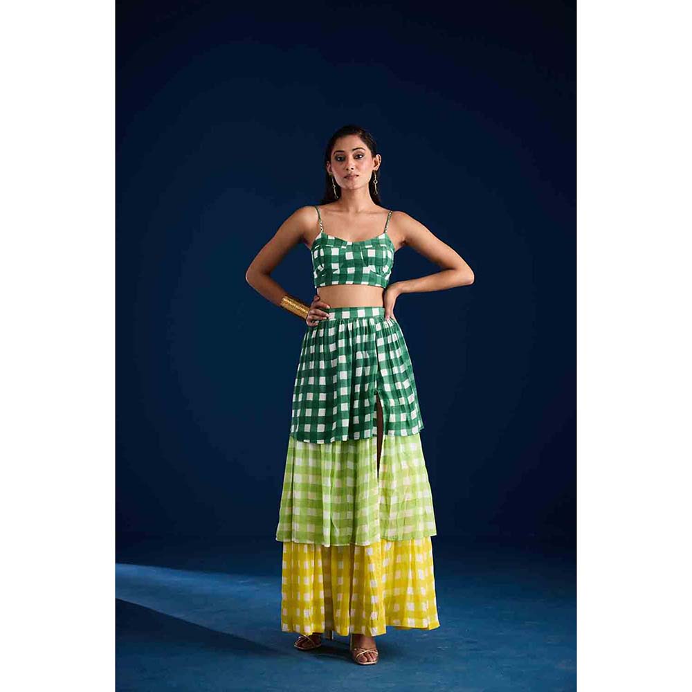 Aapro Label Selah Tier Skirt With Stitched Blouse - Multi-Color