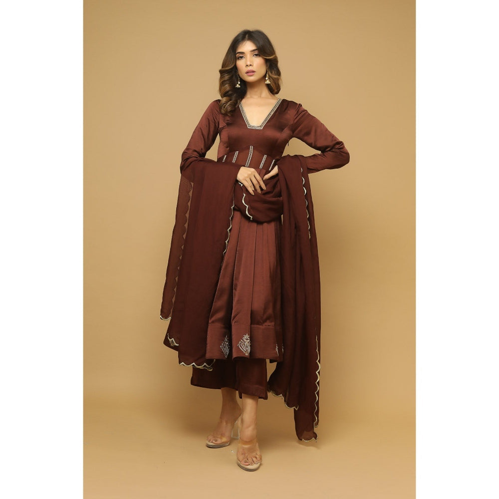 Ahi Clothing Brown Anarkali Satin Suit (Set of 3)