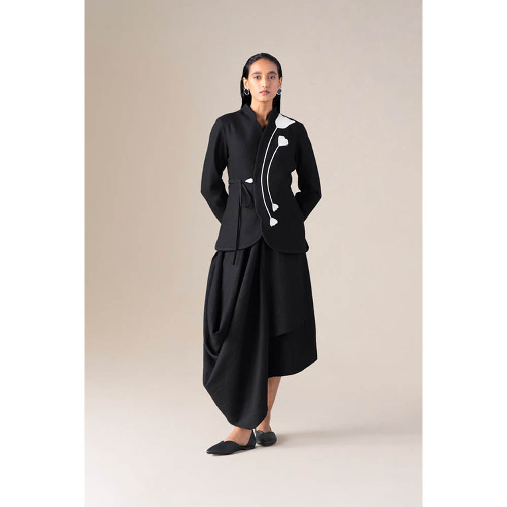 Effortlessly composed, the Iver jacket holds its shape like a thought perfectly formed. Gently curved and secured with a faux leather strap, the warm charcoal wool is punctuated by ivory embroidery that blooms in symmetry.
