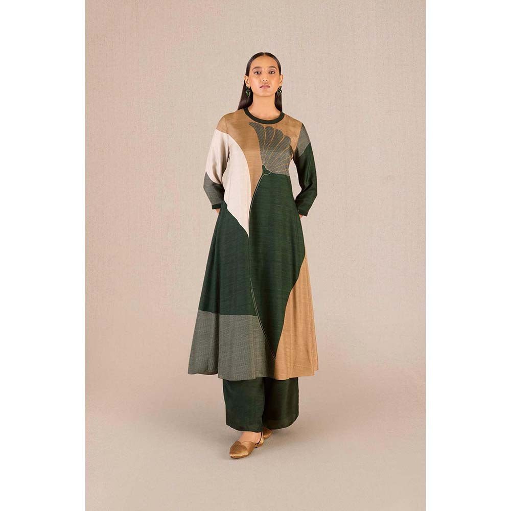 Sahira Green Colorblock Kurta with Palazzo and Dupatta (Set of 3)