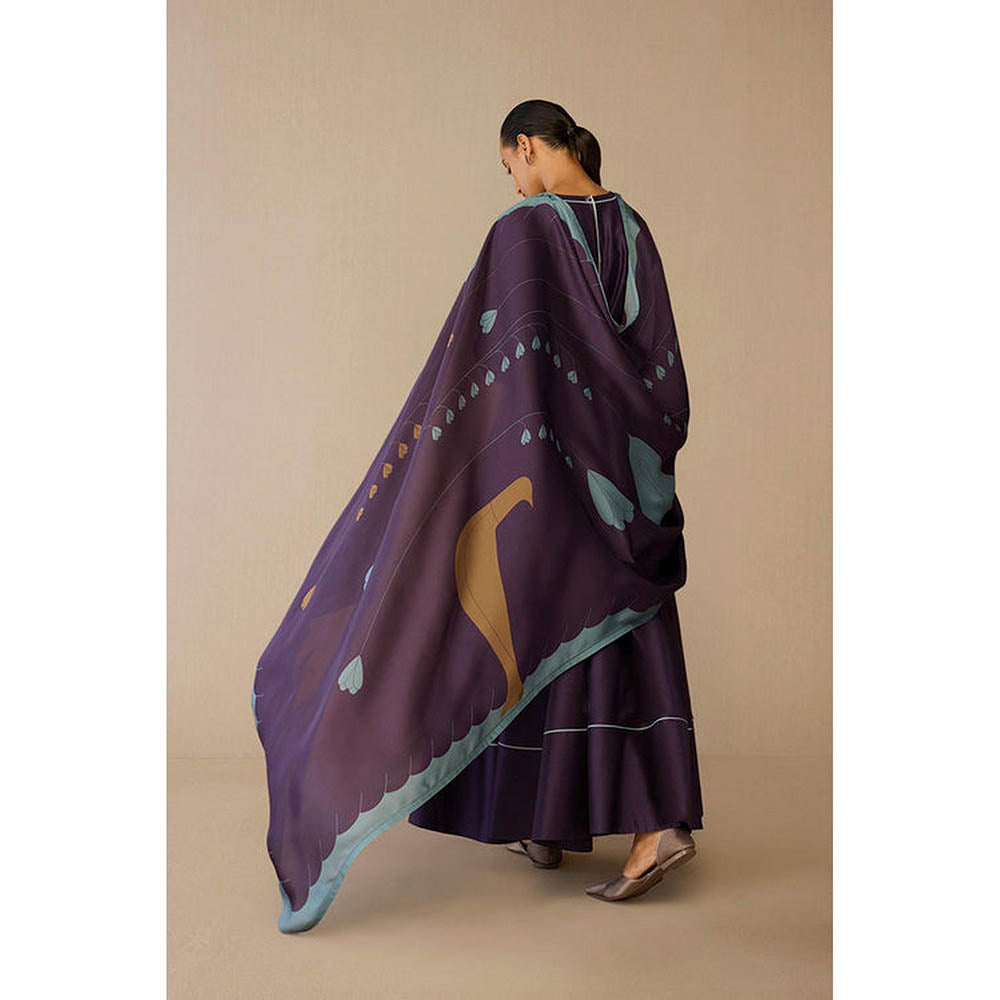 Description : Get festive-ready with this purple anarkali set from AMPM. Crafted from chanderi, this beautiful set is finished with three fourth sleeves and a round neck. Team it with a pair of heels and statement jewellery to finish off the look.