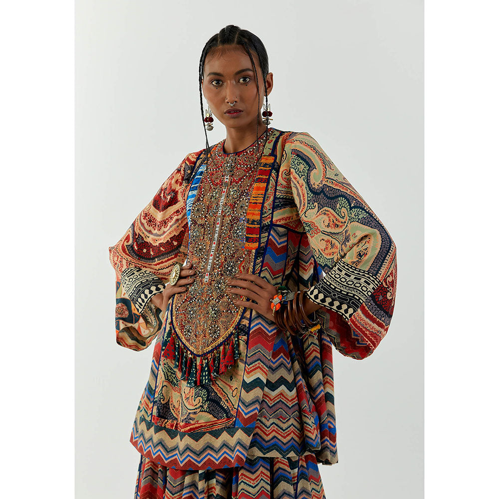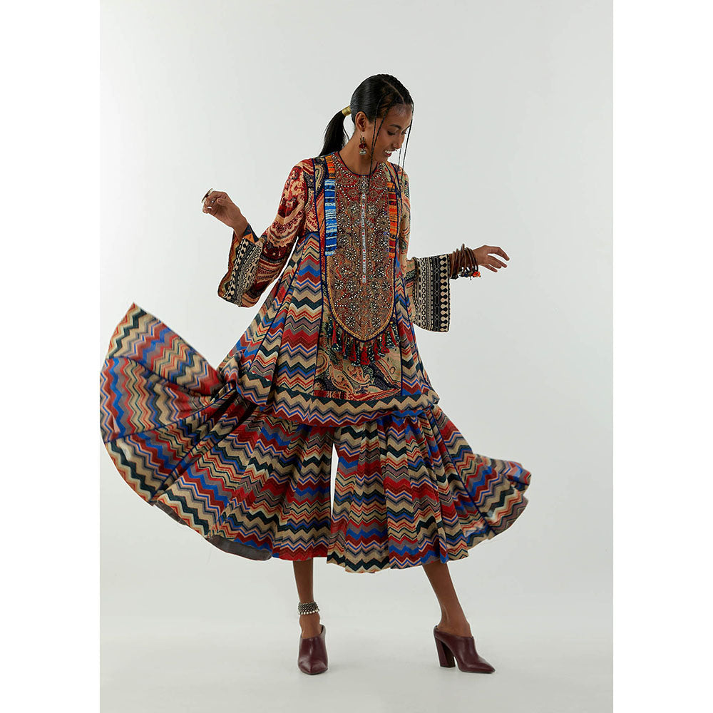Aseem Kapoor Multi-Colour Afghan Tunic With Culotte Trouser (Set of 2)