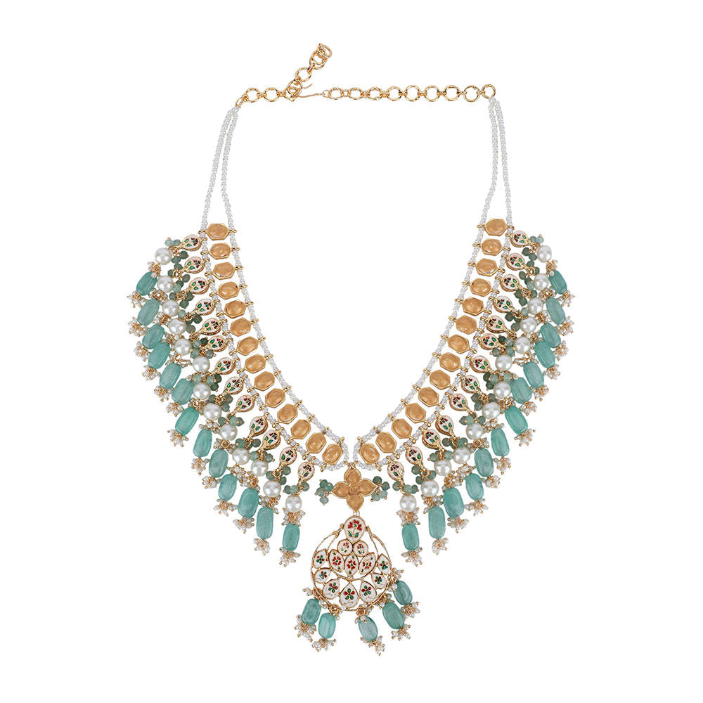 Auraa Trends 22KT Gold Plated Kundan Classic Blue Beads Necklace Set