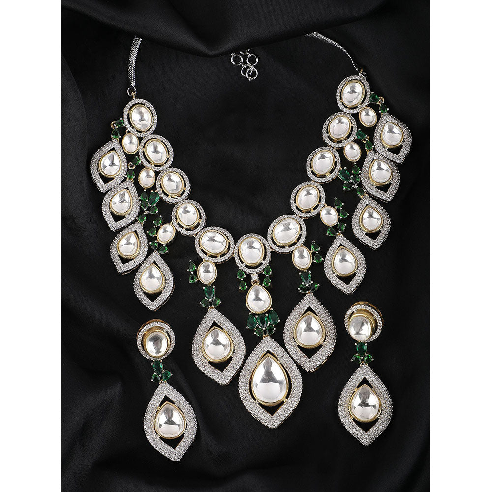 Auraa Trends Rhodium Plated American Diamond Green Necklace Set for women