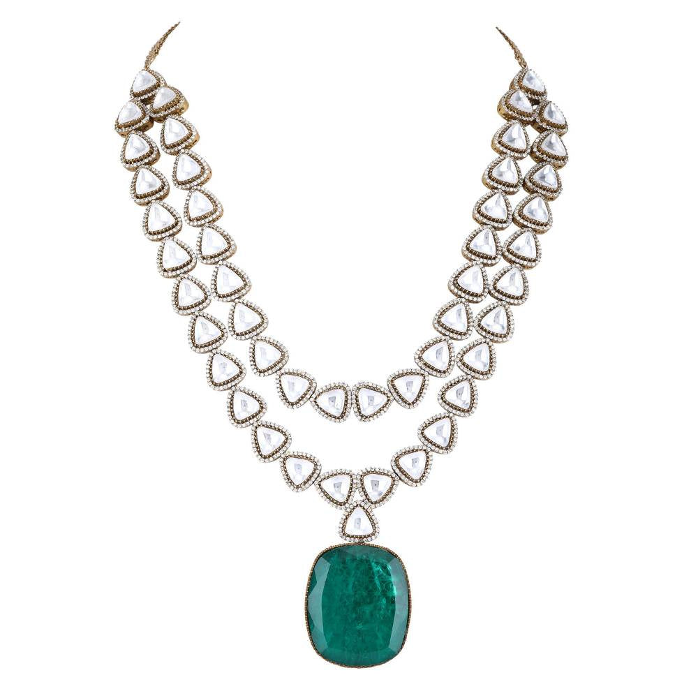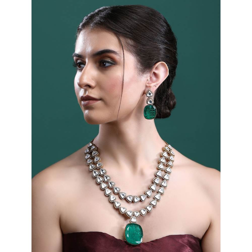 Auraa Trends Rhodium Plated American Diamond Zircon Green Necklace Set for Women