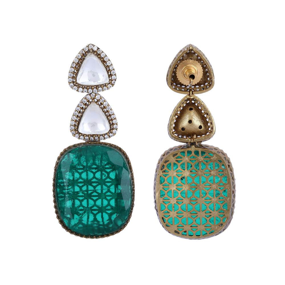Rhodium Plated American Diamond Zircon Green Necklace Set For women
