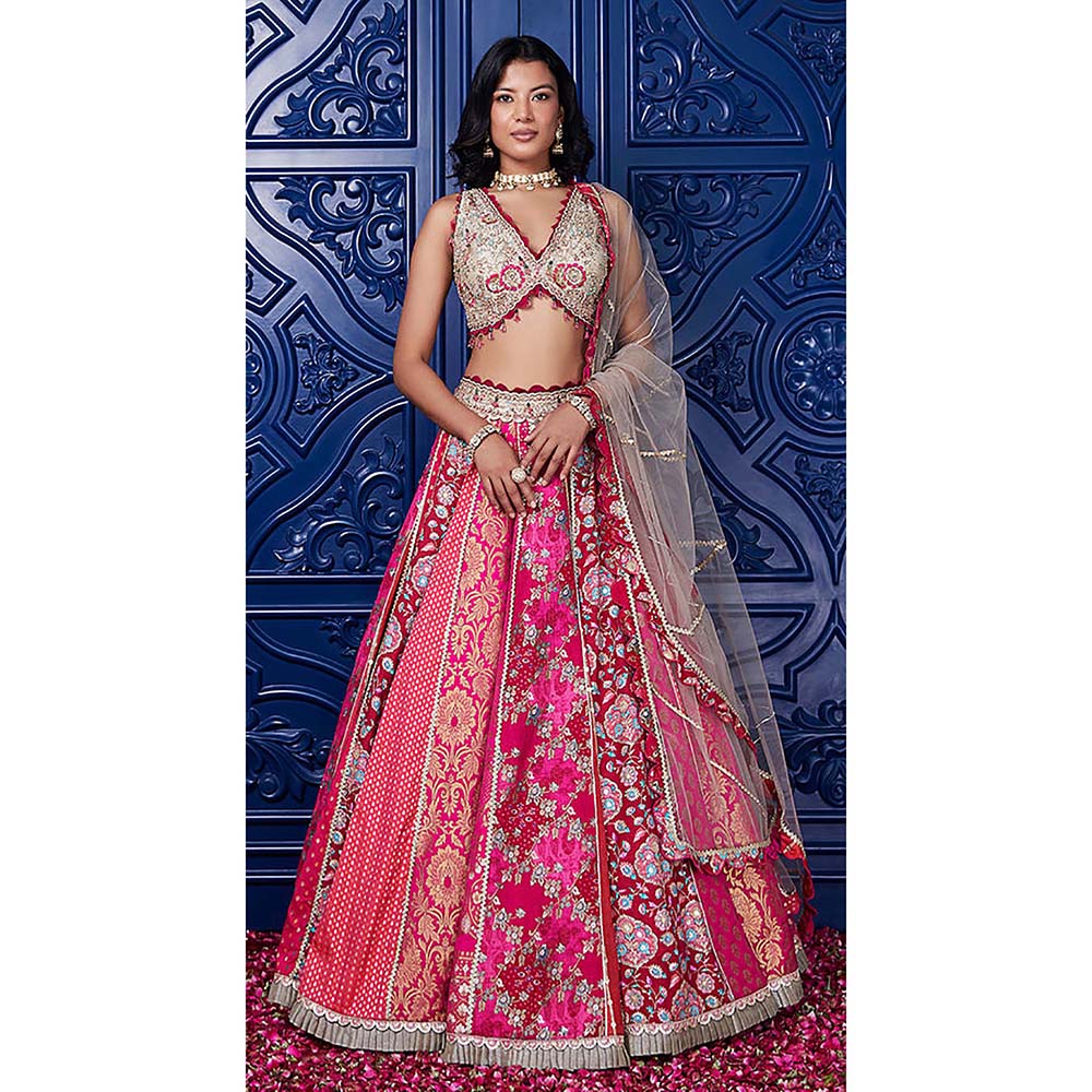 Pink Banarasi Embroidered Lehenga with Blouse and Dupatta