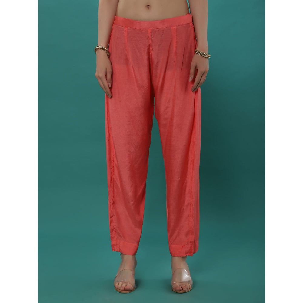 Description : Featuring A Pink Print Kaftan In Georgette Base With Badla, Pearls, Mirror Embroidery. It Is Paired With Shantoon Inner And Pant.