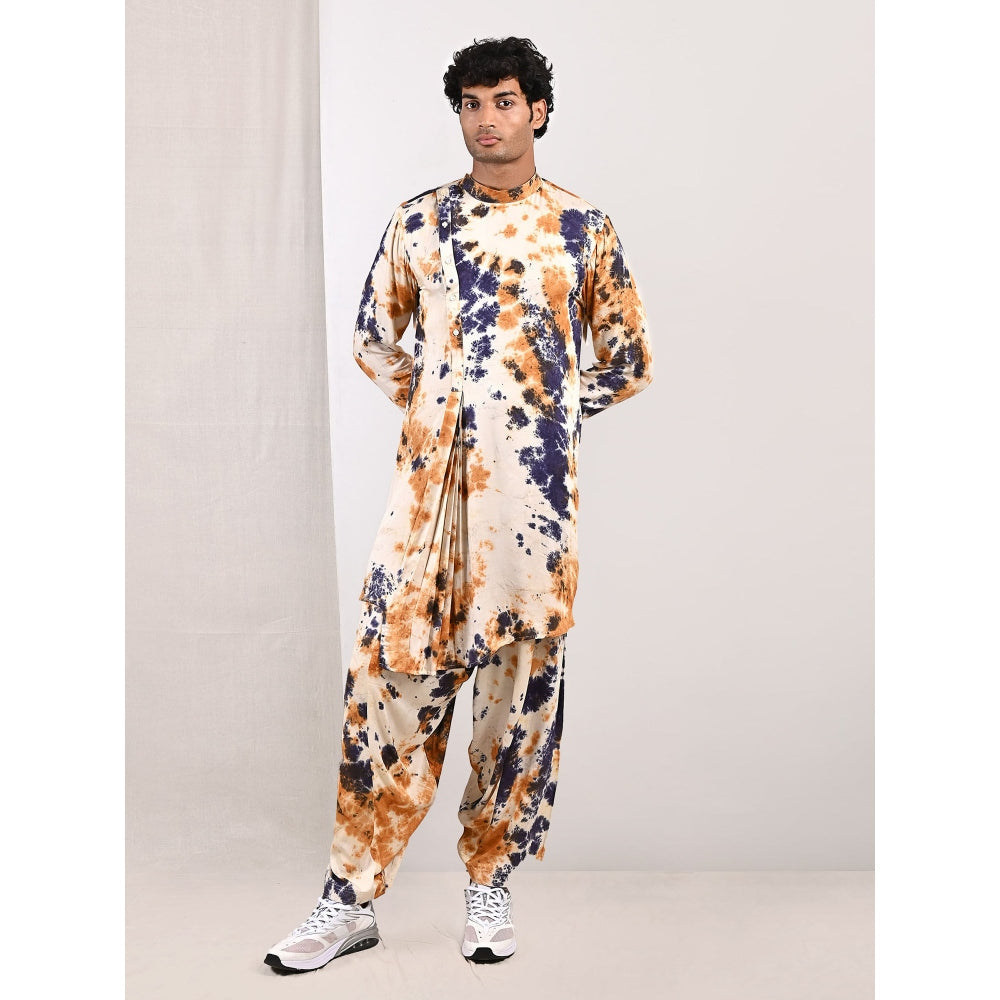 Description : A Tie & Dye Long kurta set with Pleats and a placket at the ride side of the kurta with Salwar