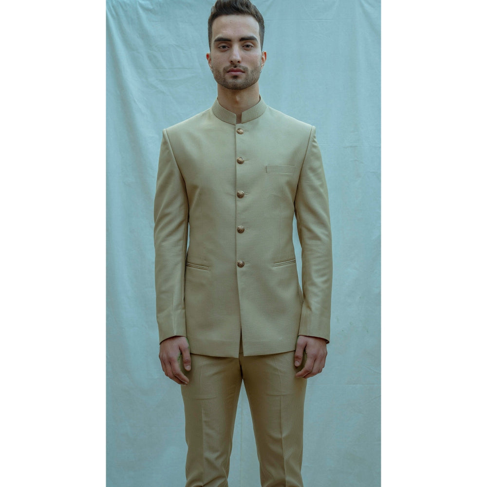 Description : Elevate your sartorial game with the classic and textured beige classic bandgala set that will stay in style for so many occasions to come! It is brilliantly tailored for your bespoke taste. Finish off the classic look with embellished mojaris, a classic wristlet and statement sunglasses for the pre-wedding festivities.