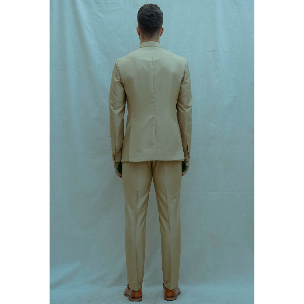Textured Beize Classic Bandgala Kurta And Pajama (Set of 2)