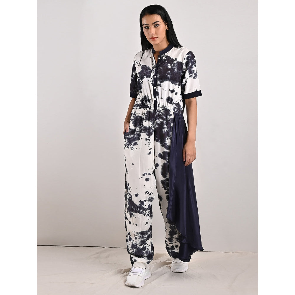 Description : This Tie & Dye Buttoned-Down Jumpsuit is easy-breezy, attached with a flare.