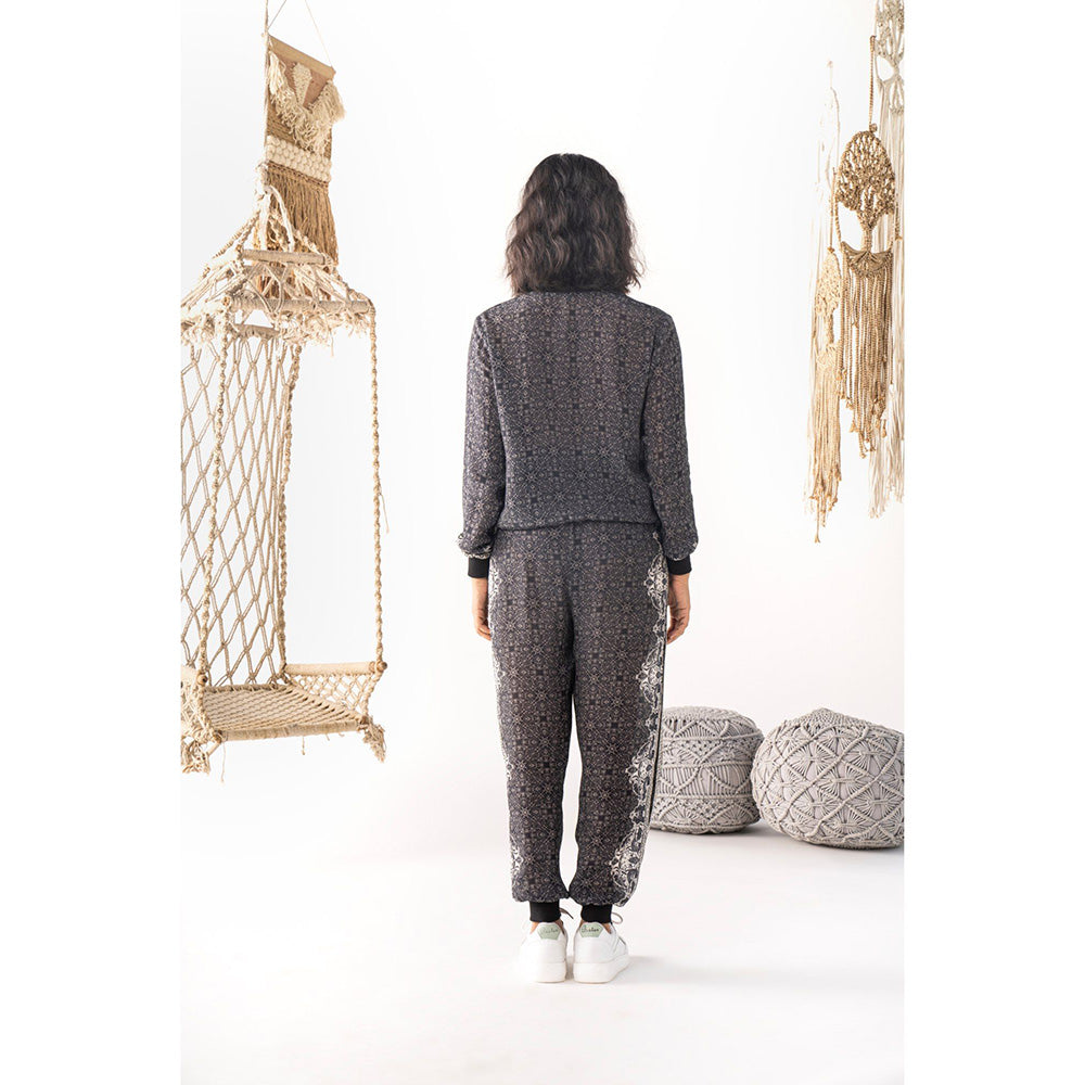 Chhavvi Aggarwal Women Printed Black Jacket with Joggers (Set of 2)