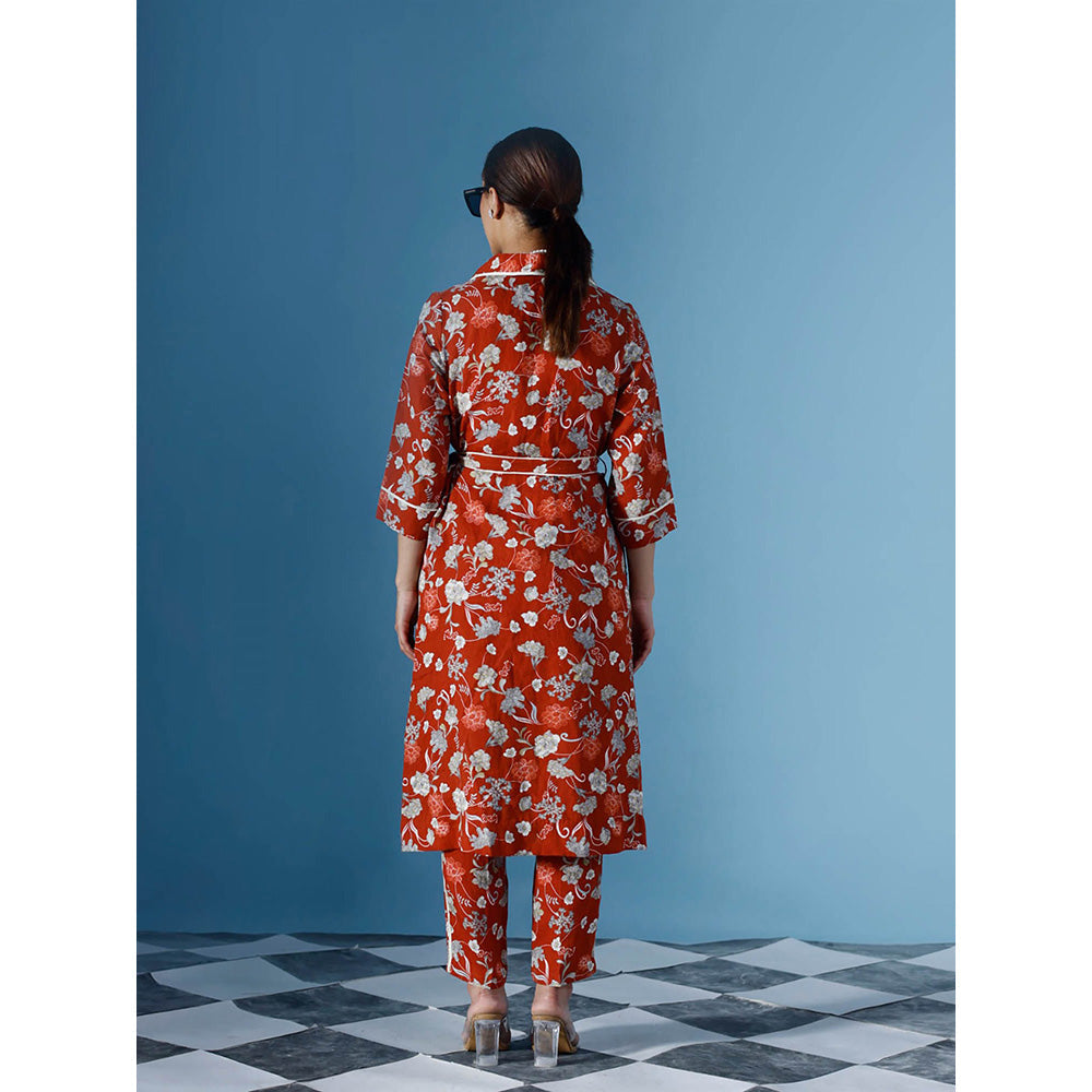 Description : Get ready to slay with Chokhi Chorri red jacket, pant set. It is creafted from high quality cotton. It features printed three fourth sleeves notched lapel style and ankle high waist bottom wear style. Style with the perfect pair of heels and jewelry and you are ready to rock the day.