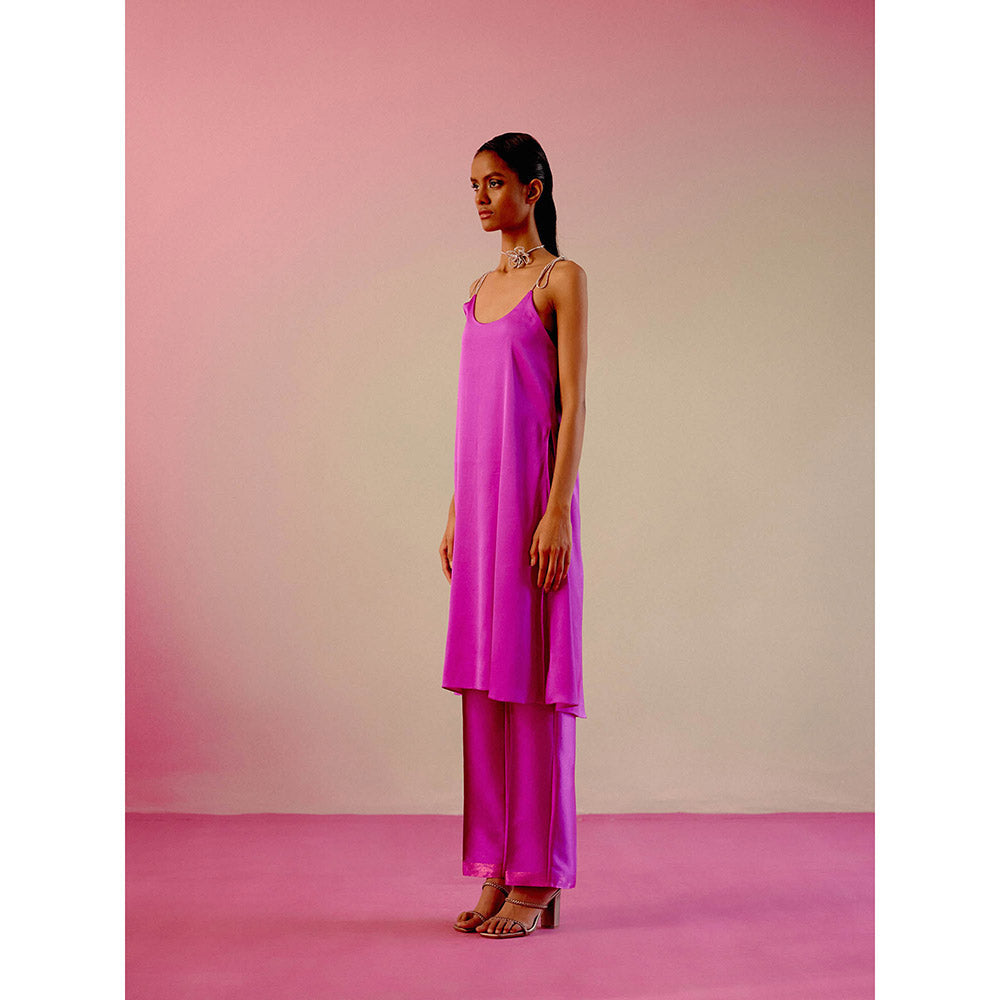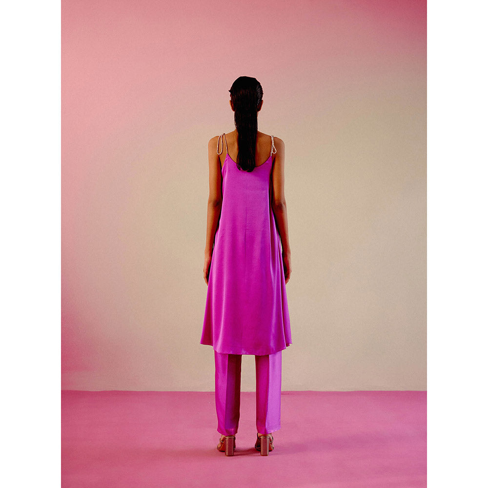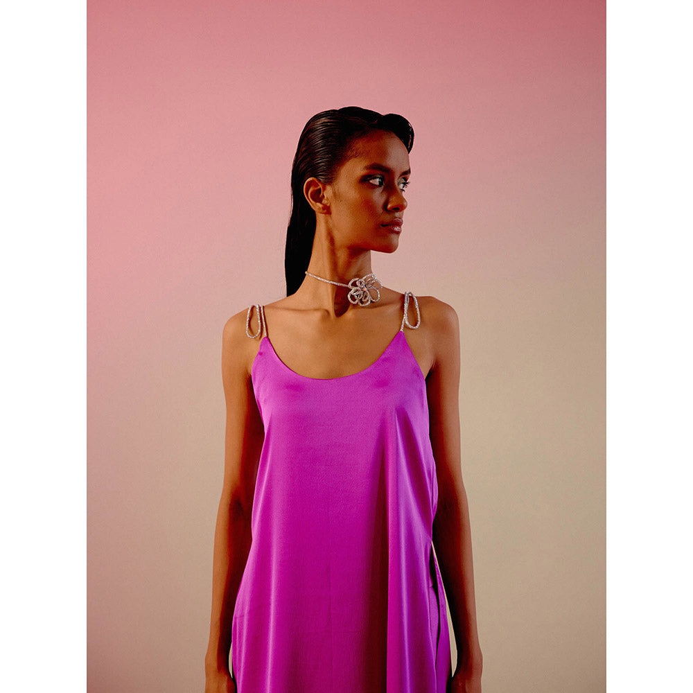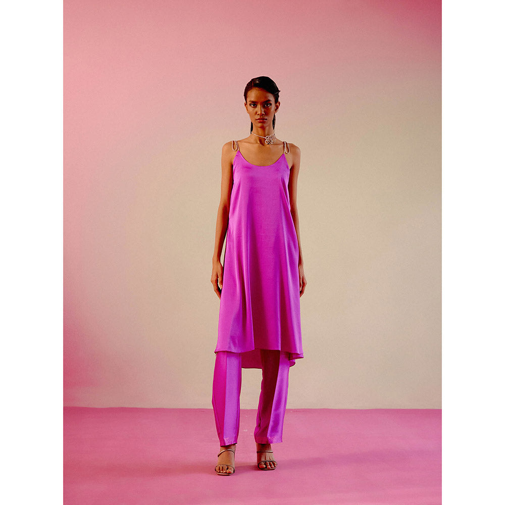 Description : Elevate your look with this purple co-ord set from DRISHTI CHHABRAA. Crafted from satin, it is finished with a sleeveless design and shoulder straps. Team this co-ord set with a pair of wedges or trendy flats to complete the look.