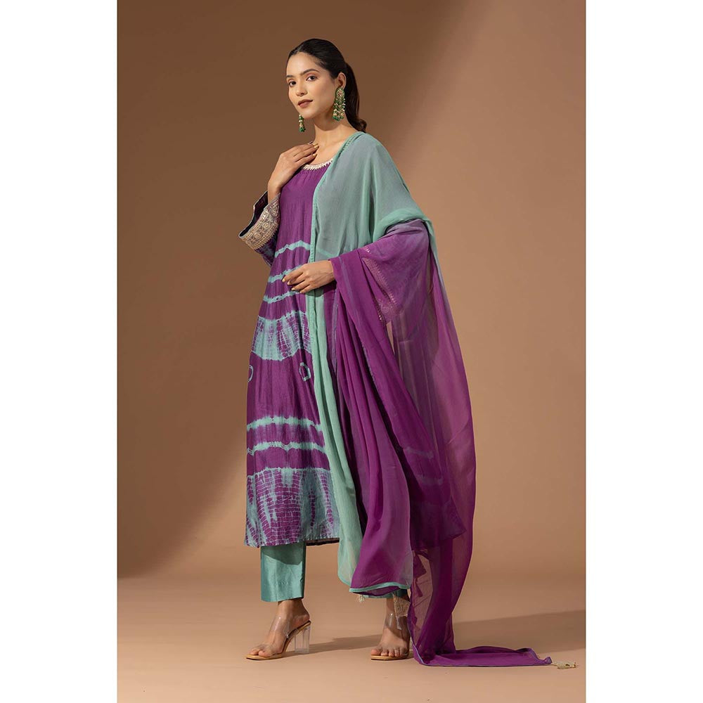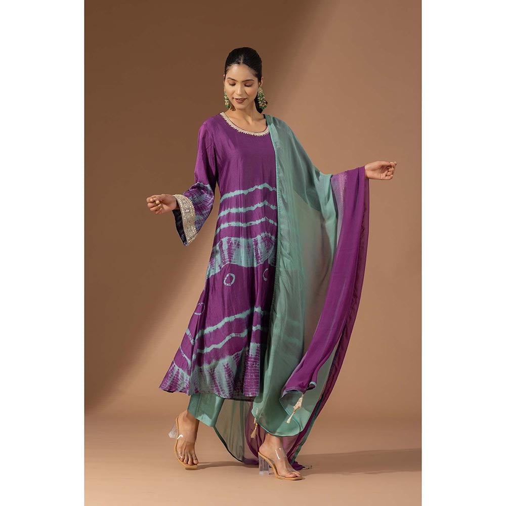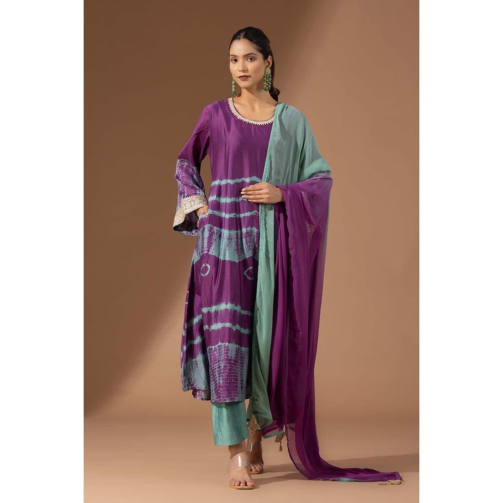 Finethreads by Hina & Nikhat Womens Tie & Dye Purple Kurta with Pant and Dupatta