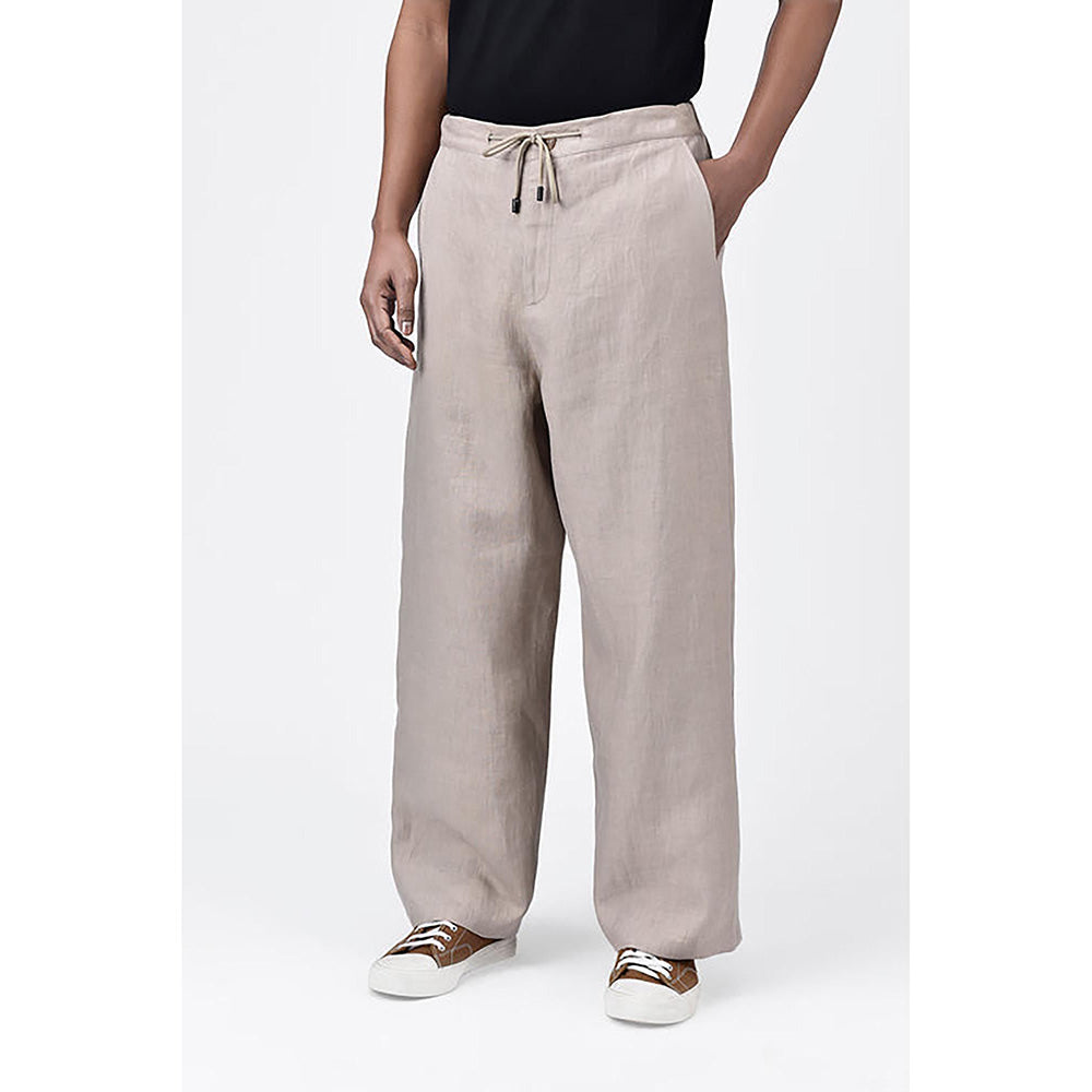 Description : Stay casual and comfortable with this beige pants from Genes Lecoanet Hemant. Crafted from linen, this stylish pair is desinged with a mid waist and straight legs. Team it with a trendy shirt and sneakers to complete the look.