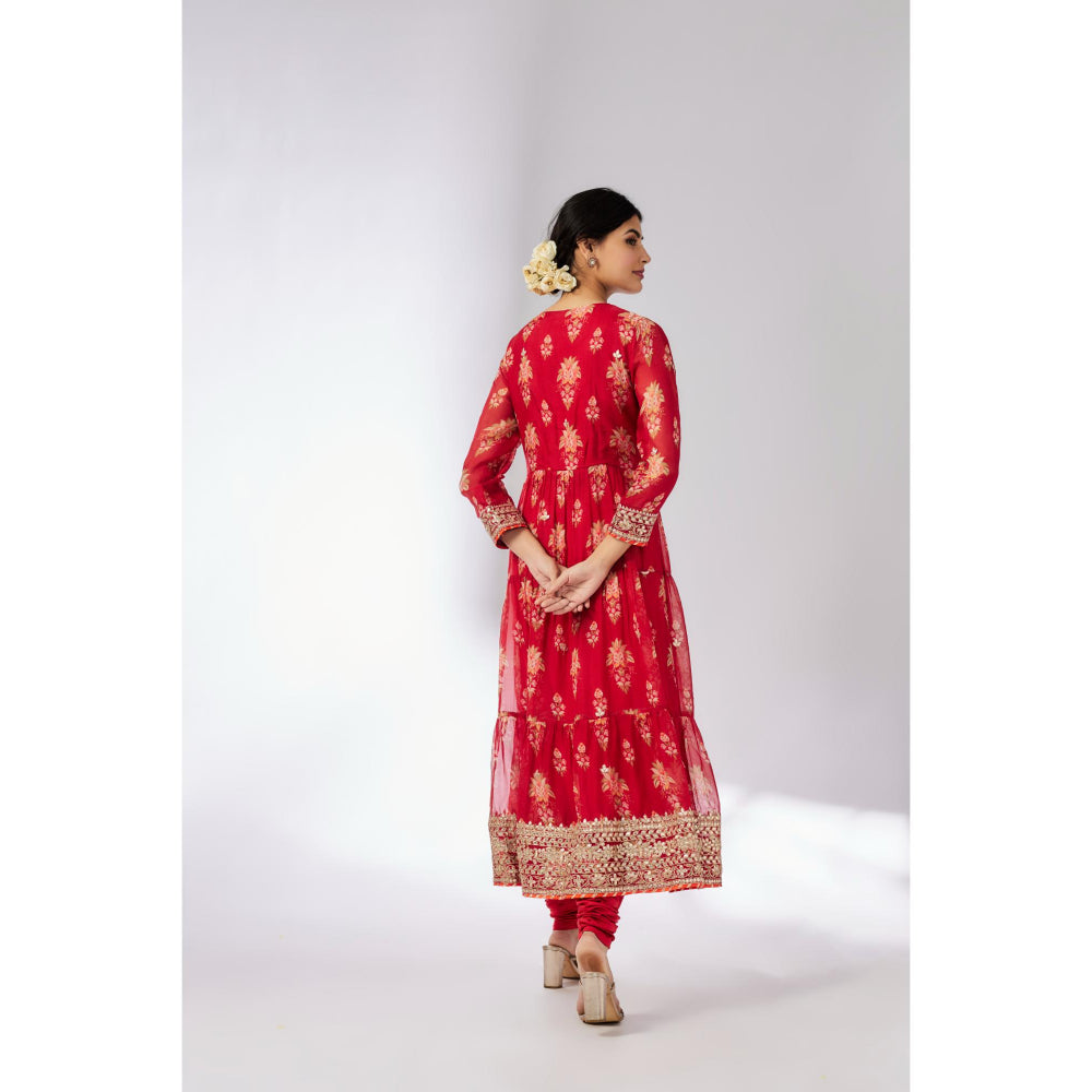 Joshna Tiered Anarkali with Churidar and Dupatta (Set of 3)