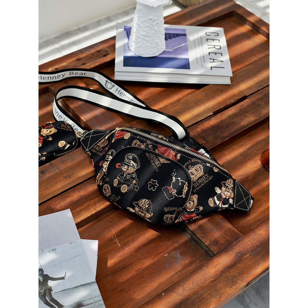 Description : Henney bear's range of travel bags combines practicality with signature style, perfect for on-the-go convenience. Made from durable materials and featuring eye-catching tapestry designs, each of this tapestry bag is designed to keep essentials secure and accessible.
