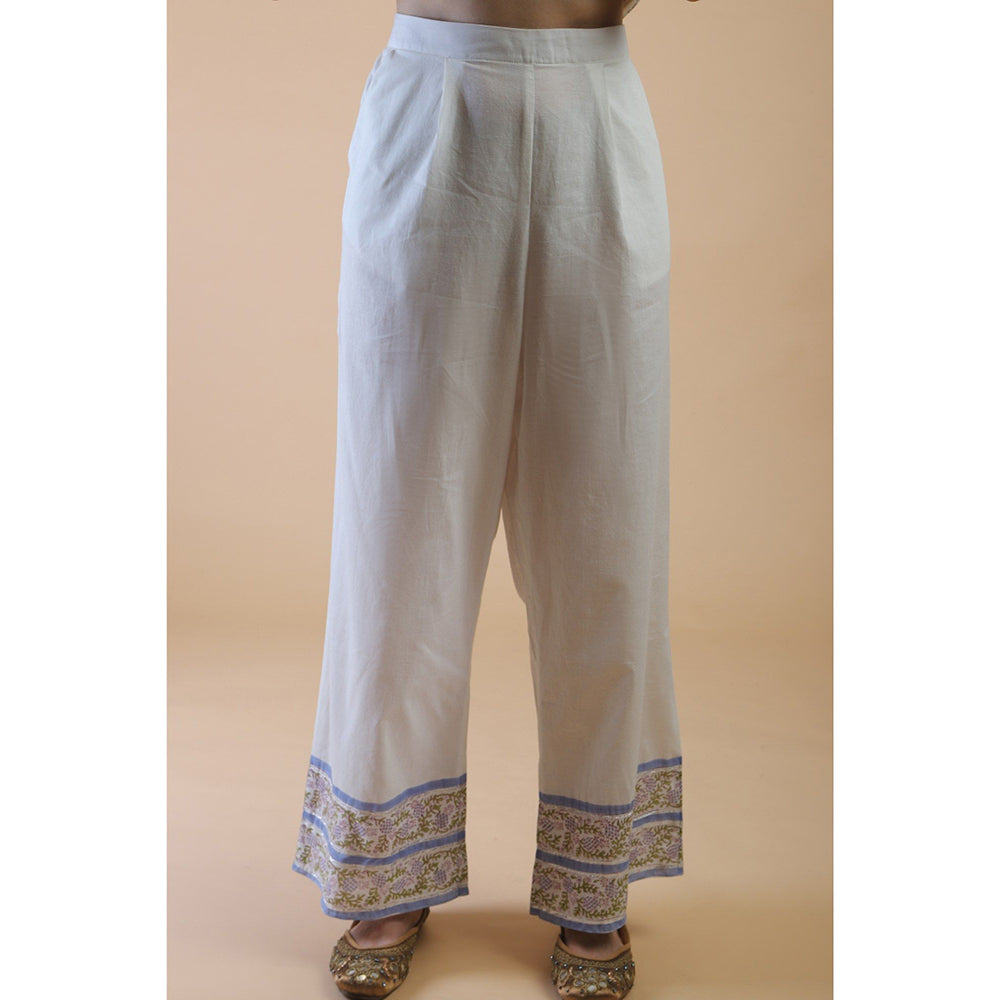 Description : Featuring Off White Embroidered Kurta With White Cotton Palazzo And Printed Dupatta Set