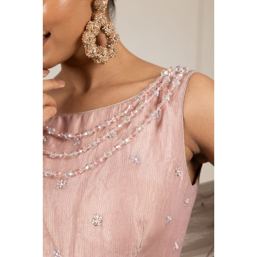 Description : Give your weekend wardrobe a contemporary twist with this peach anarkali set from House of Supriya. Made from high-quality organza, this kurta features sleeveless design, a round neck, back closure, and an embroidered pattern, finished with a mid-waisted pant and stylish dupatta. Style it with minimal jewelry and sandals to complete the ensemble..