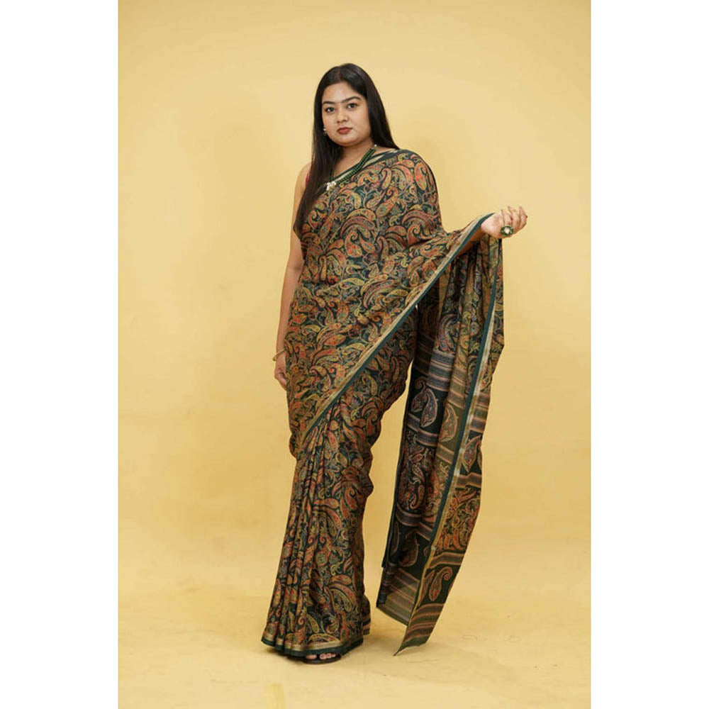 Womens Paisley Printed Multi-Color Pre-Draped Saree With Unstitched Blouse