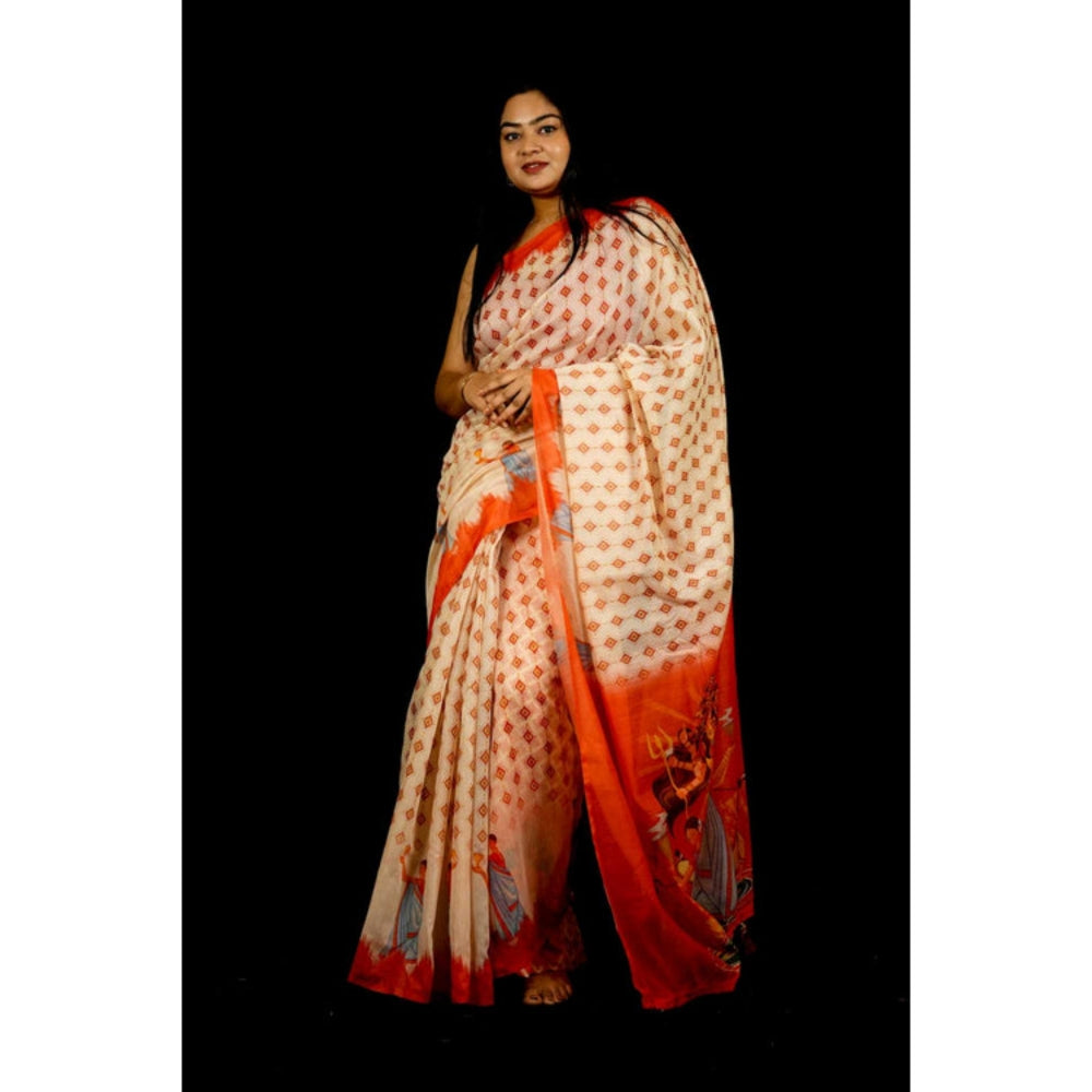 Description : Embrace timeless tradition with our exquisite cream saree paired with an unstitched blouse piece, giving you the freedom to customize your perfect fit and style. Crafted from luxurious fabric of cotton blend that flows effortlessly, this saree showcases intricate detailing and vibrant hues designed to turn heads at any celebration or festive occasion. The unstitched blouse lets you tailor the look exactly how you envision be it classic, contemporary, or somewhere in between. Whether draped for weddings, parties, or cultural events, this set promises grace, comfort, and endless styling possibilities.