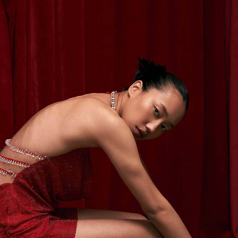 Description : Flaunt elegance by stepping out in this captivating red crystal embellished backless short dress with front cowl neck from Itrh. Made from high-quality net, this piece features a sleeveless design and a cowl neck. Style it with minimal jewellery and sandals to complete the ensemble.