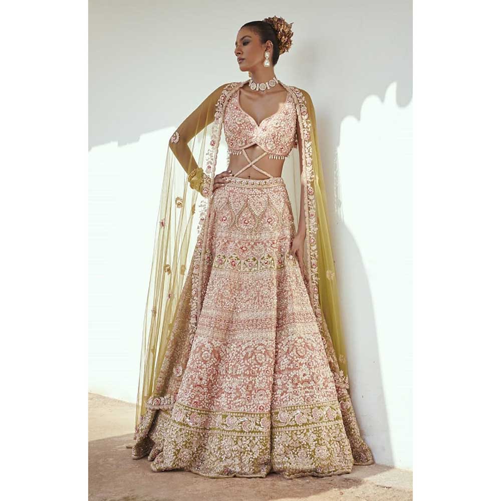 Jigar and Nikita Light Rust Bridal Blouse and Lehenga with Dupatta (Set of 3)