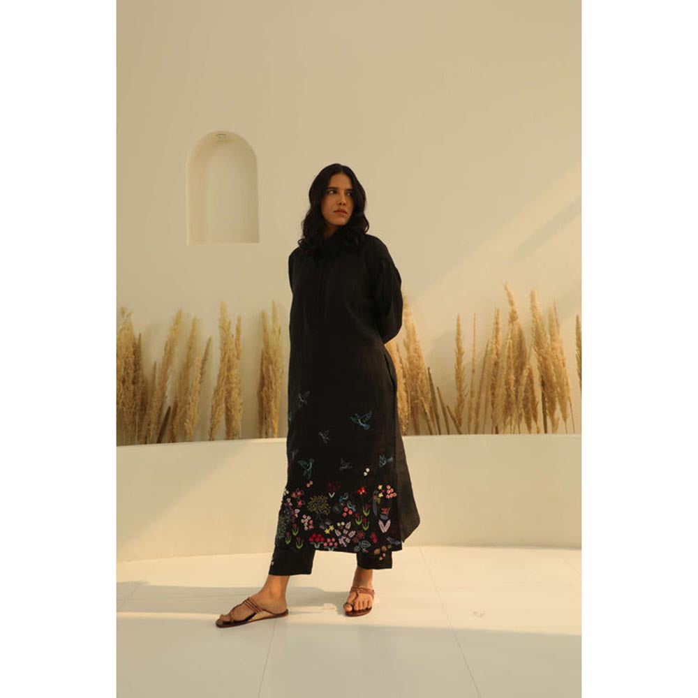 KAVANA Women Embroidered Black Shiuli Kurta and Pant