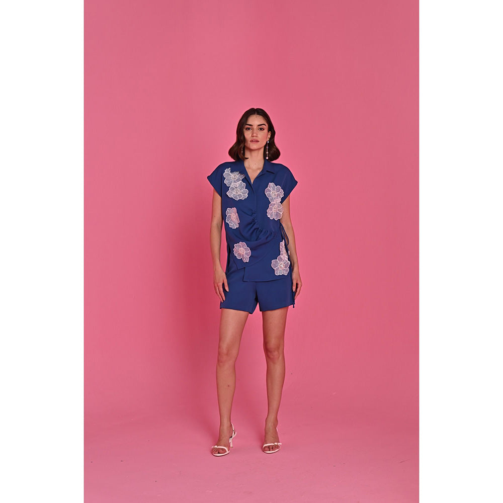 Label Iris Blue Belle Embellished Top and Shorts (Set of 2)