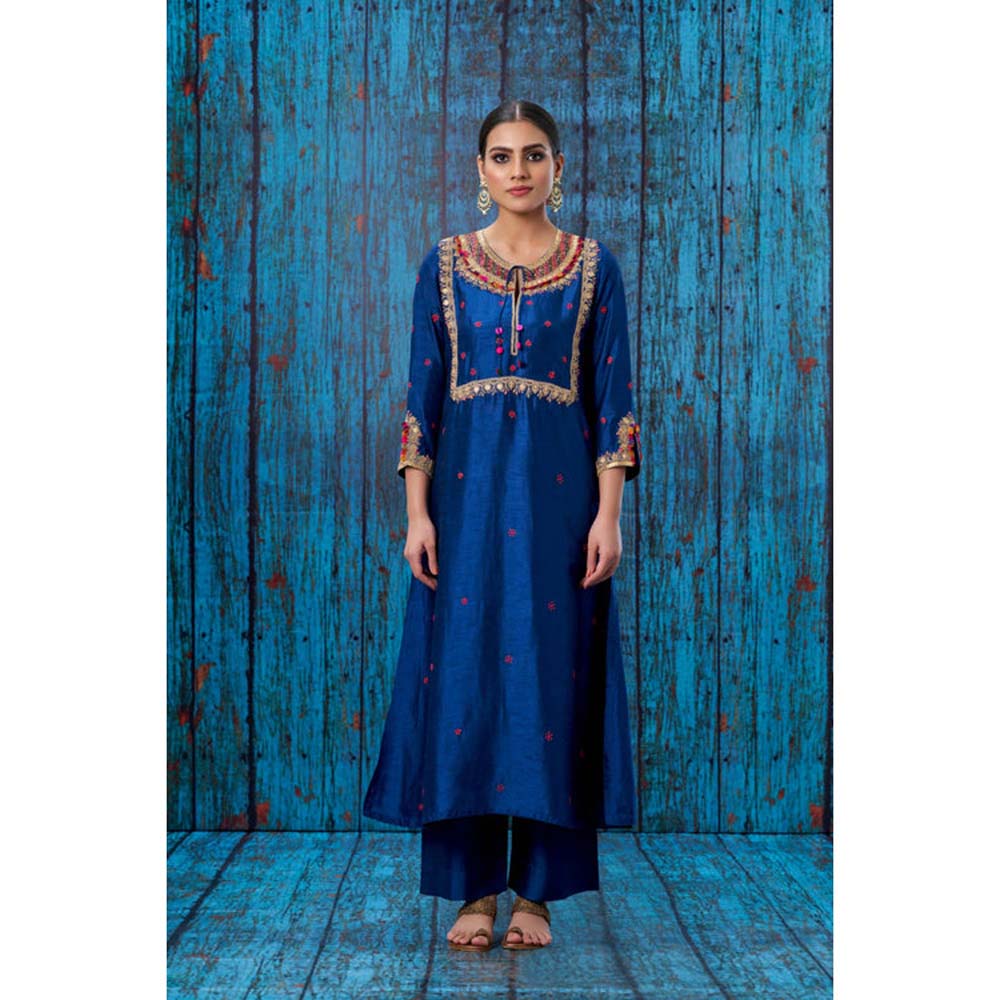 Label Niti Bothra Blue Colourful Coin Round Neck Kurta With Palazzo