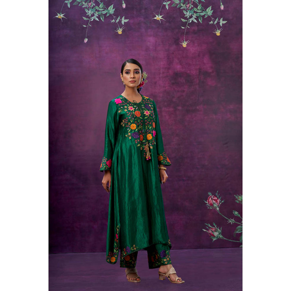 Label Niti Bothra Green Floral Embroidered Yoke Kurta With Palazzo