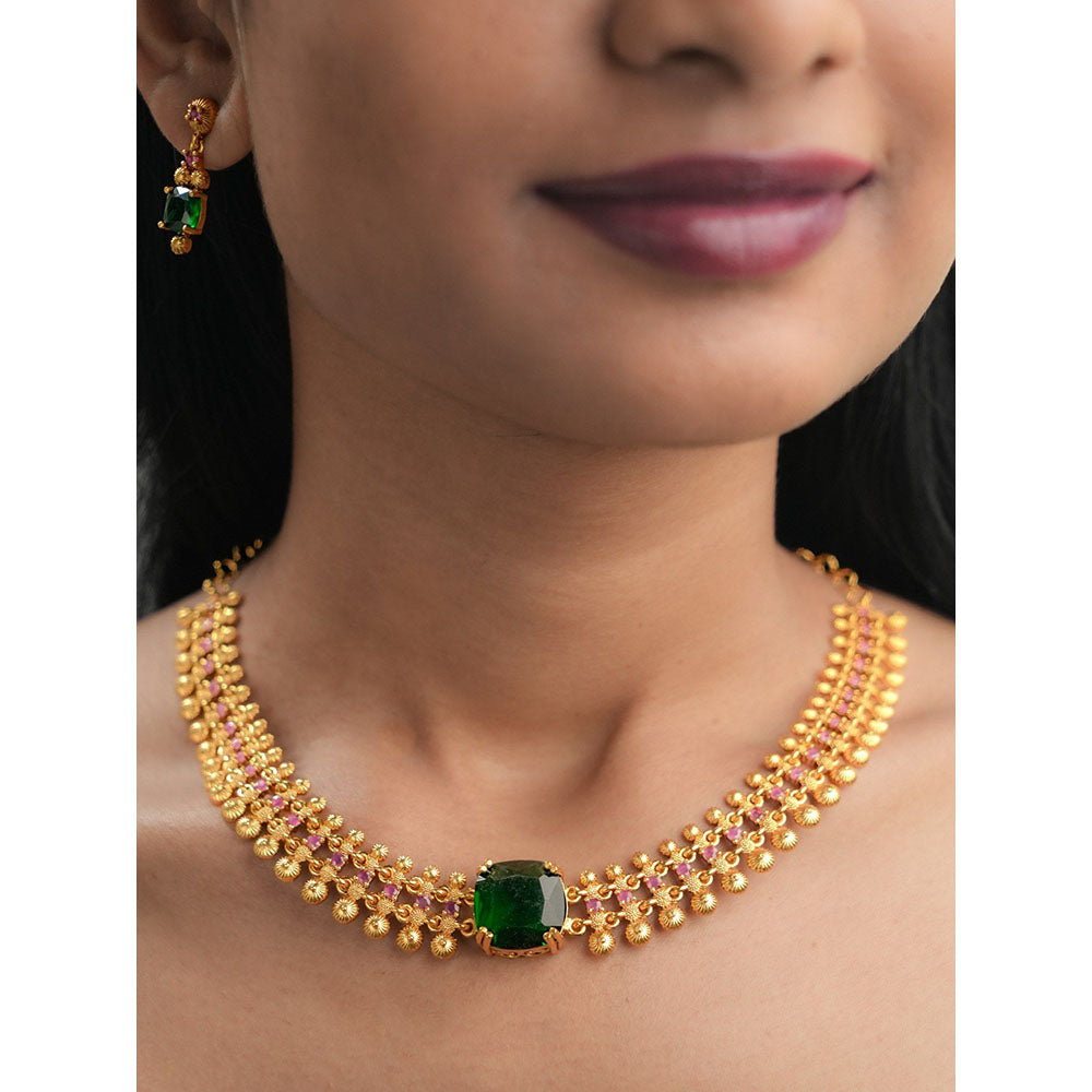 Label Ruby Gold-Plated Temple-Style Green Topaz Jewellery Set