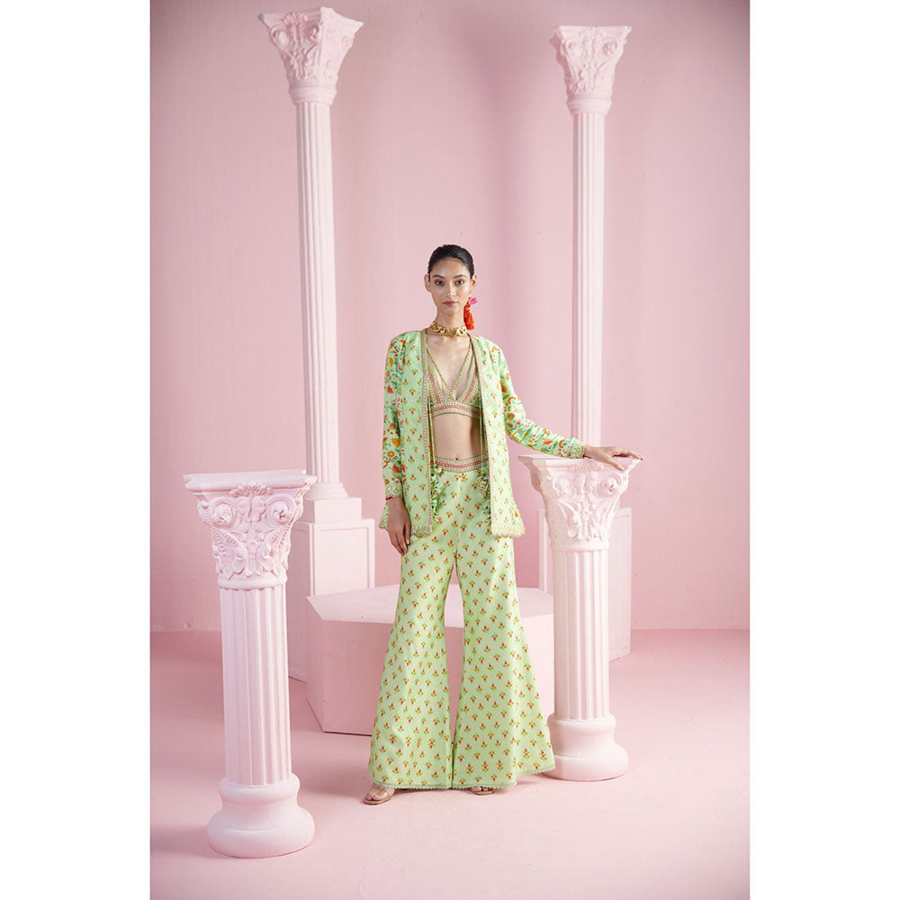 MANDIRA WIRK Women'S Farah Floral Kurta with Sharara and Jacket (Set of 3)