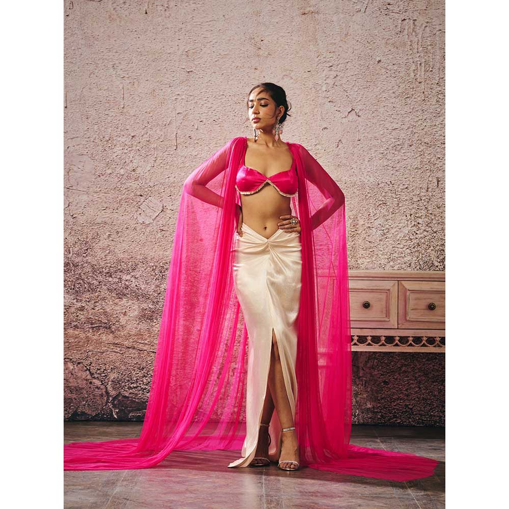 Masumi Mewawalla Hot Pink Blouse with Cape and Skirt (Set of 3)