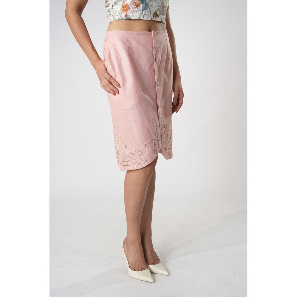 Orthodox Pink Tulip Silhouette Skirt with Warli Motifs
