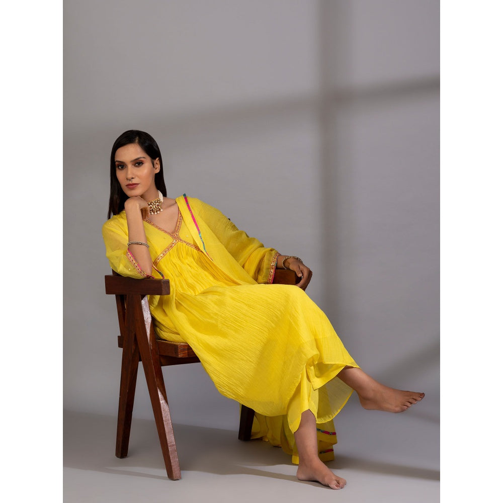 Yellow Chanderi Kurta & Pant (Set of 2)