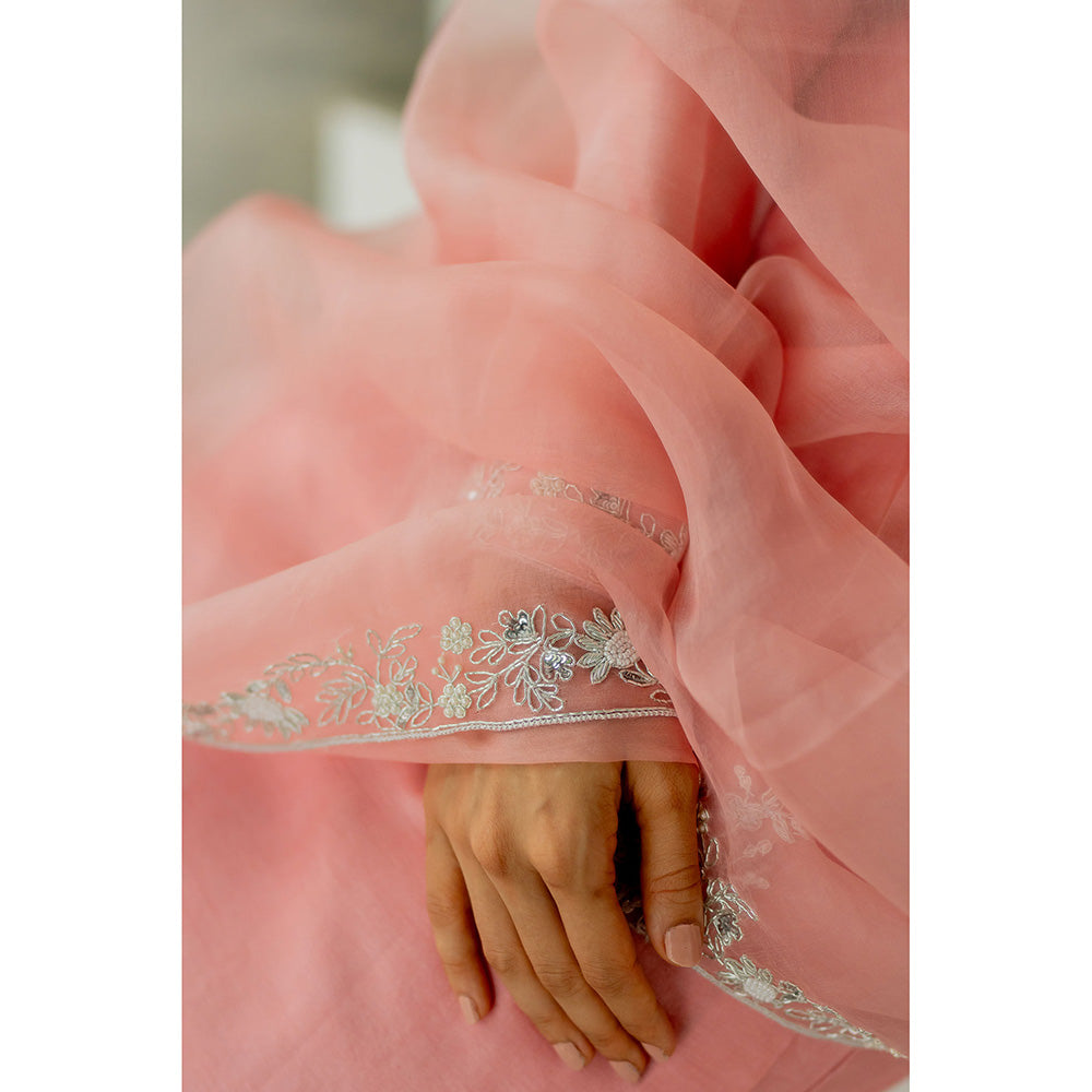 PEELI DORI Blush Pink Embroidered Kurta with Pant and Dupatta (Set of 3)